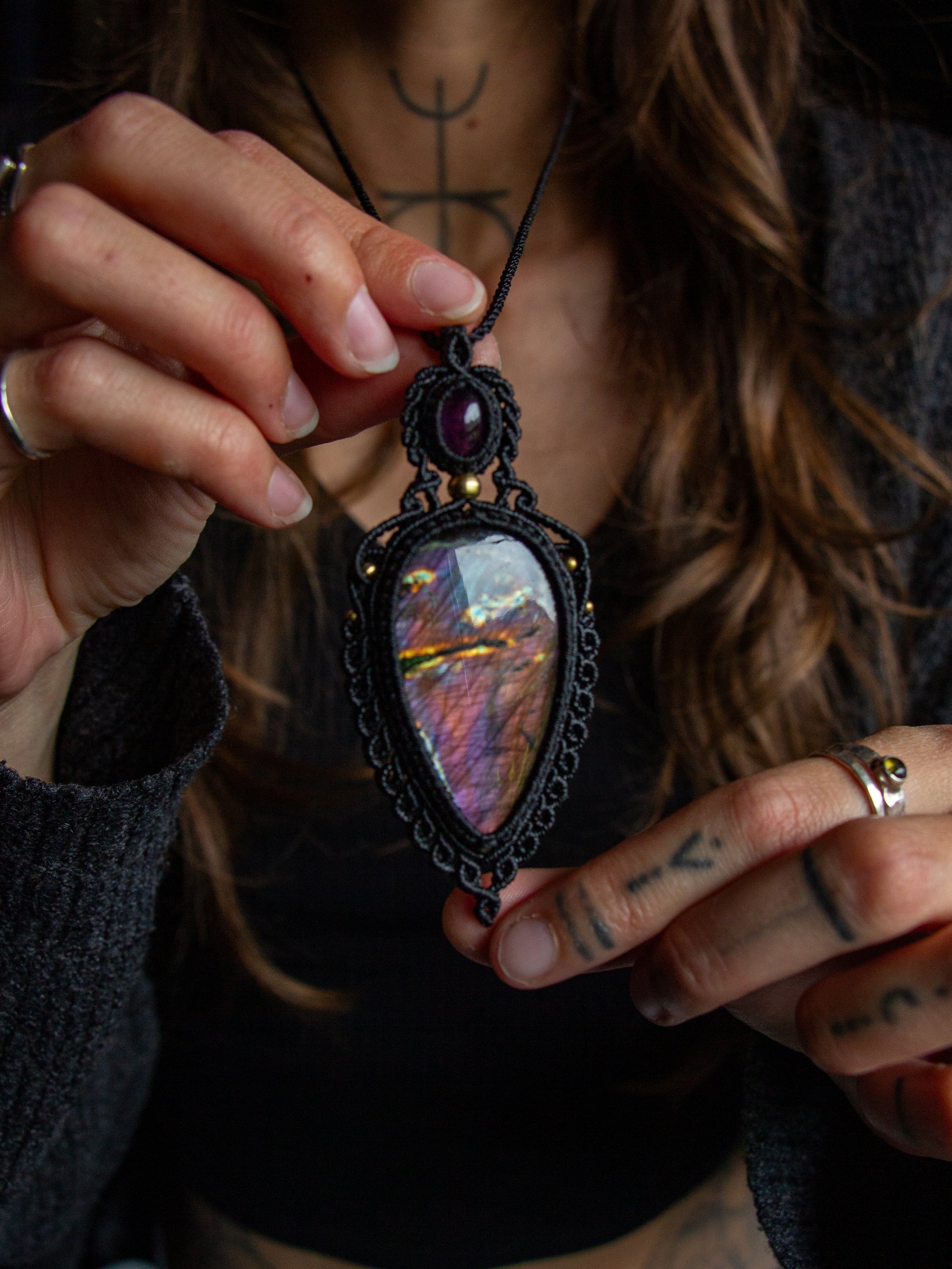 handmade macrame necklace with beautiful Amethyst & Labradorite
